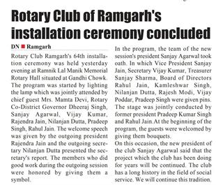 INSTALLATION CEREMONY WAS HELD ON 20.7.25 AT ROTARY HALL, RAMGARH. . . .